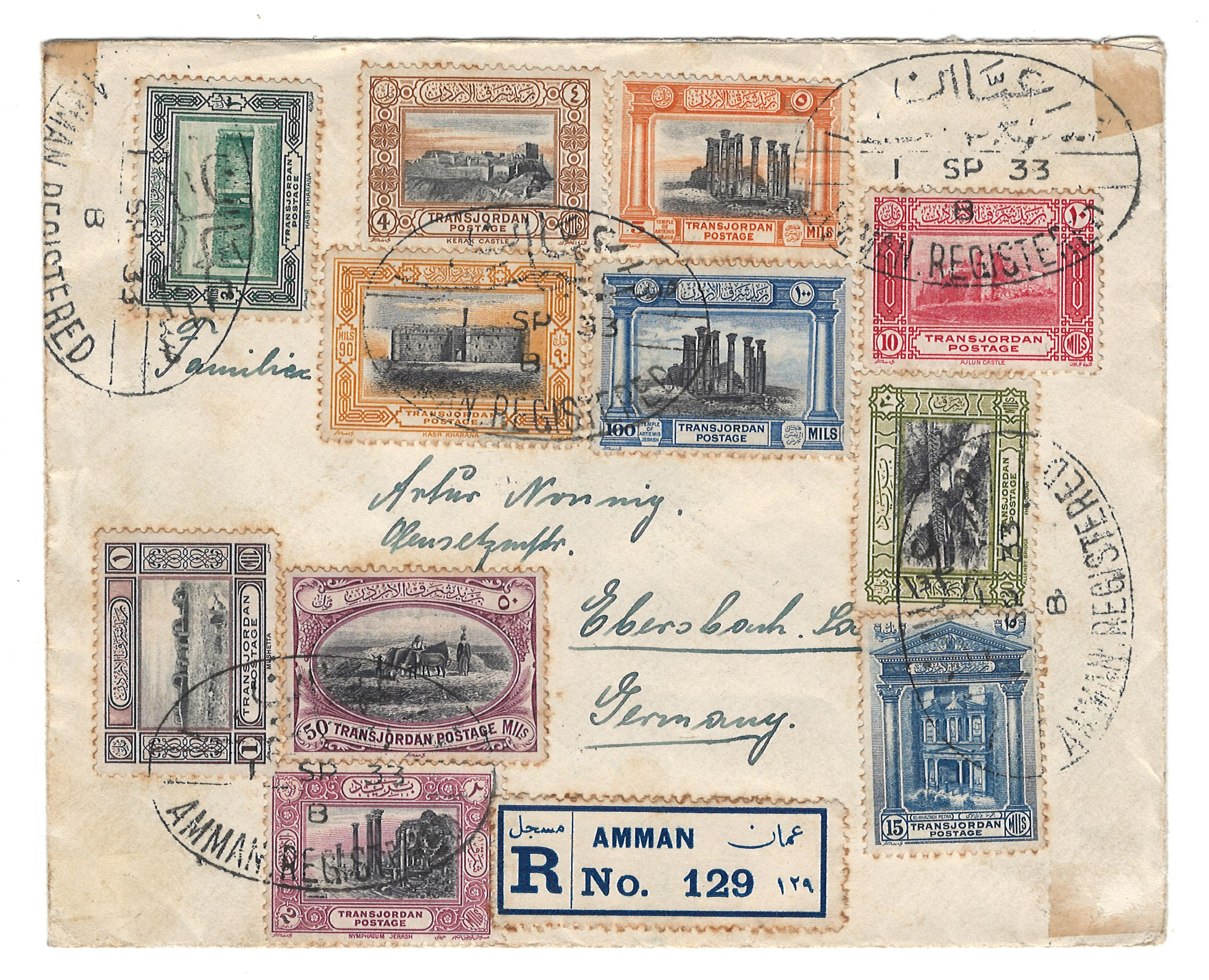 Palestine 3rd E.E.F. Series with Fiscal Handstamp, "East of Jordan", "Arab Government of the East", and Surcharge (5)