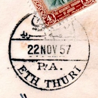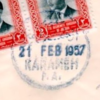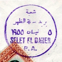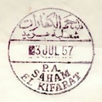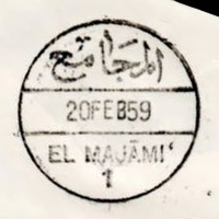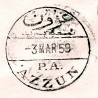 PM ID: 23 referencesDouble oval shape postmark. Name and date in Arabic.
