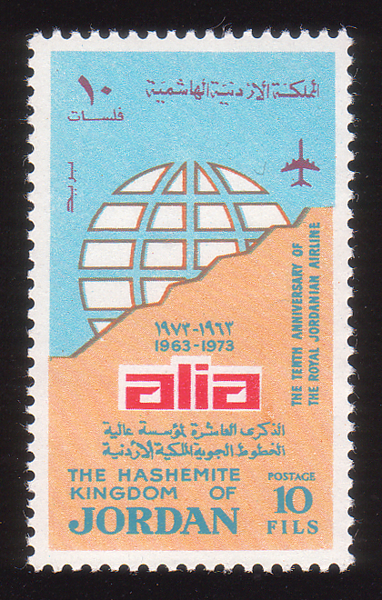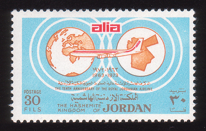 Boeing 707 airliner linking globe and map of Jordan |