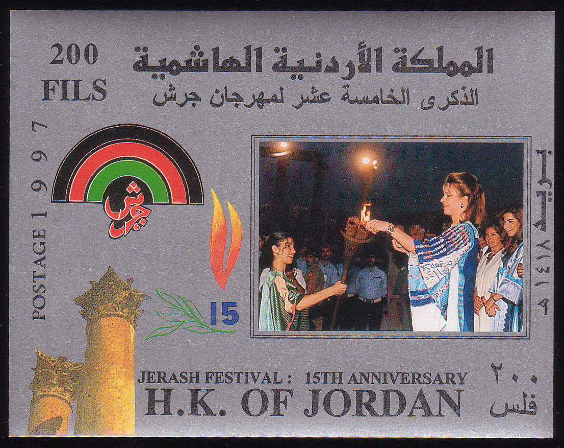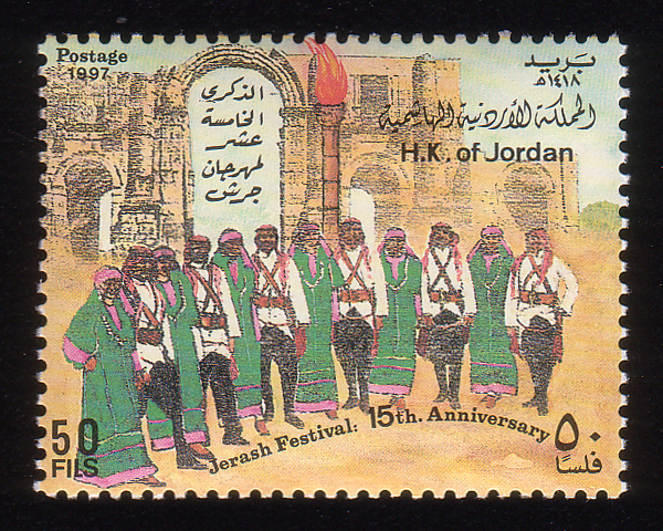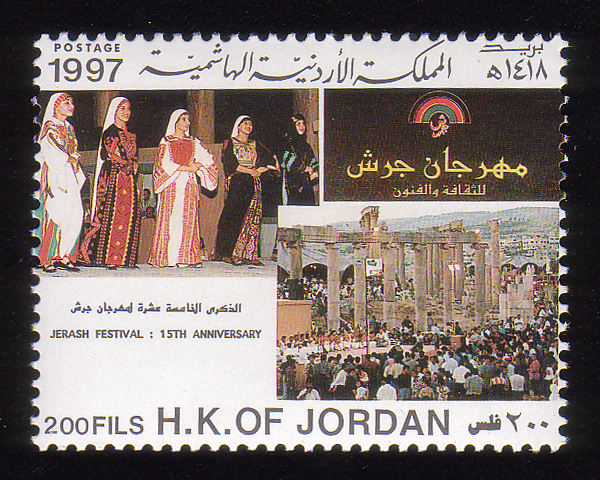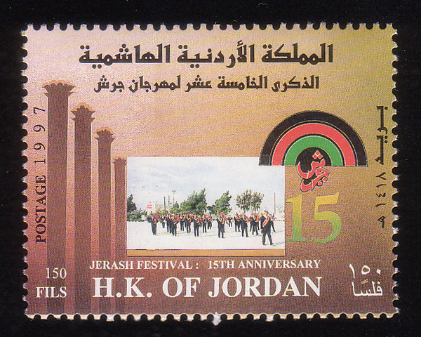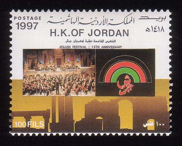 Orchestra, festival emblem, and Jerash ruins |
