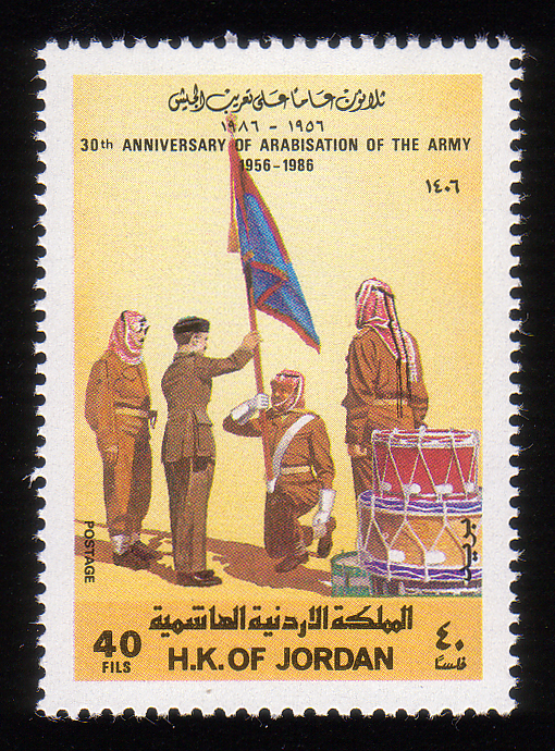 King Hussein presenting colors |