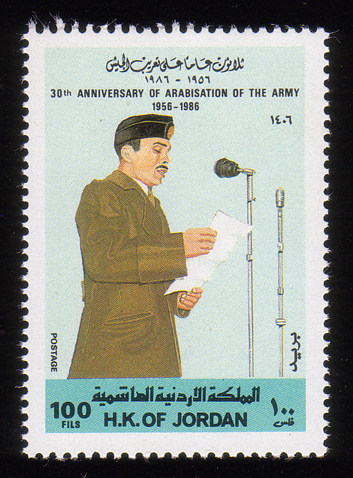 King Hussein addressing army |