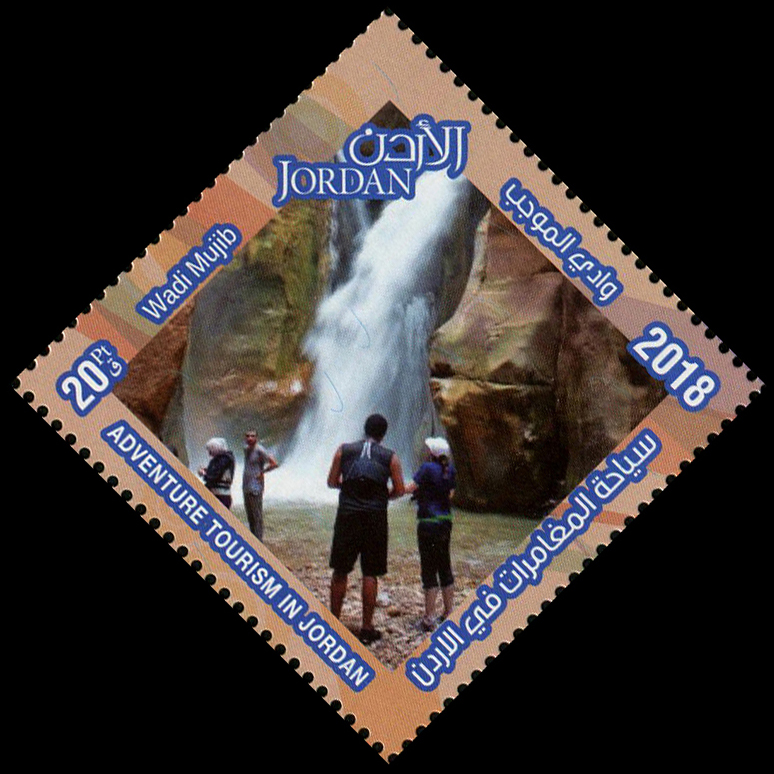 Tourists looking at waterfall in Wadi Al-Mujib |