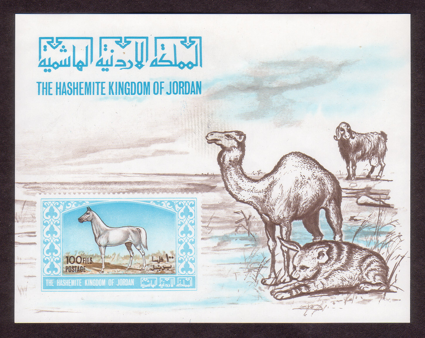 Arab horse, camel, hyena, and goat |