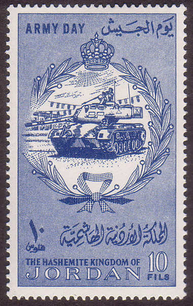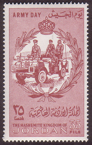 King Hussein making inspection in army car |