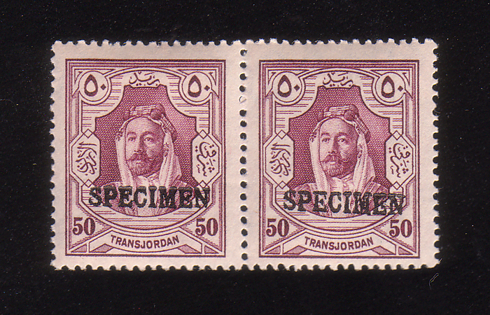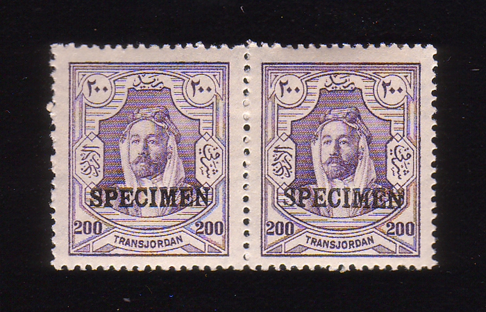 | Notes: | The word "SPECIMEN" perforated in the form of a horseshoe with 67 holes (Najjar Type JS4, Samuel Type P5) |