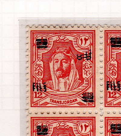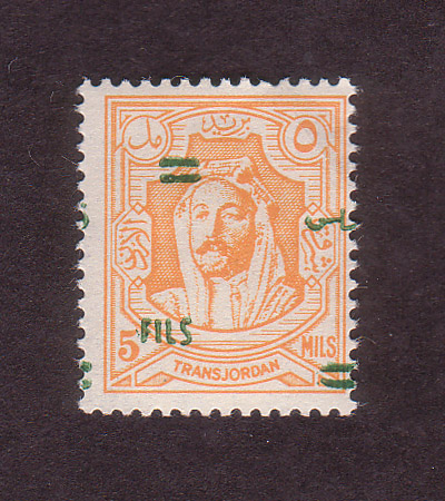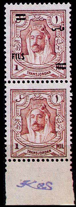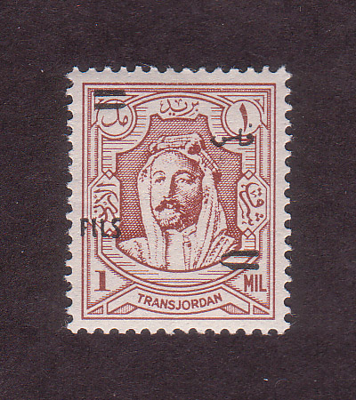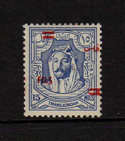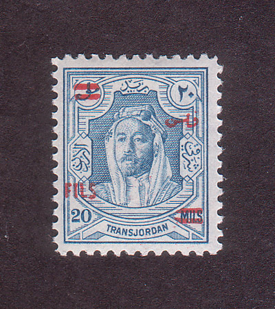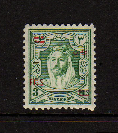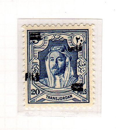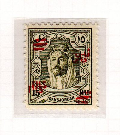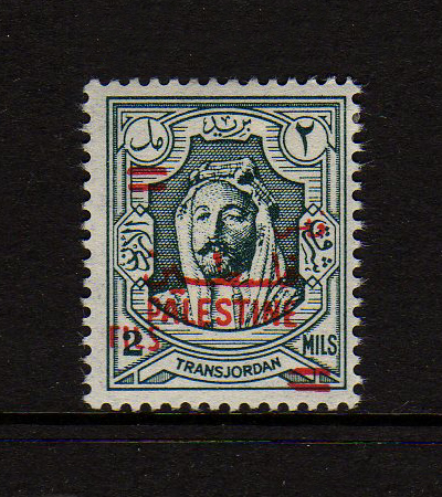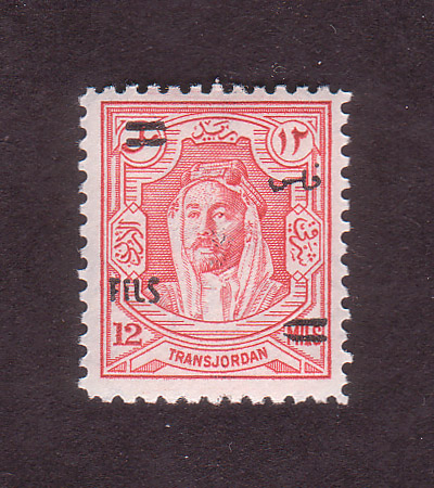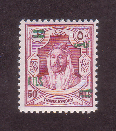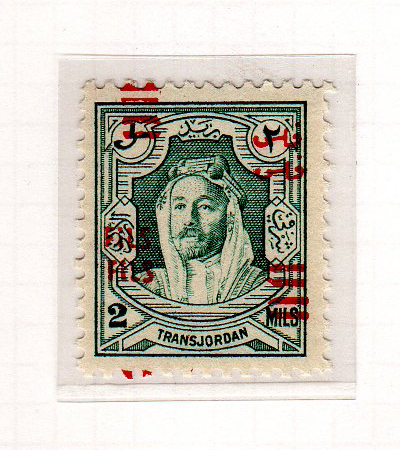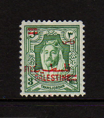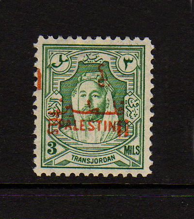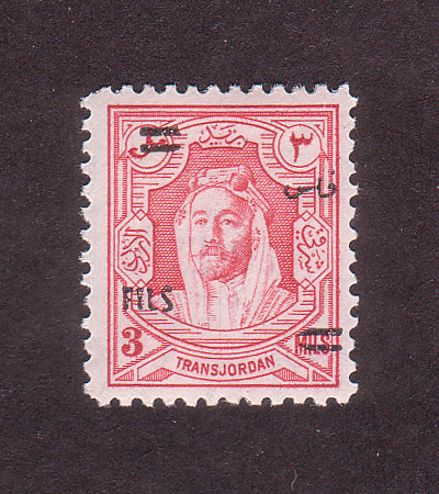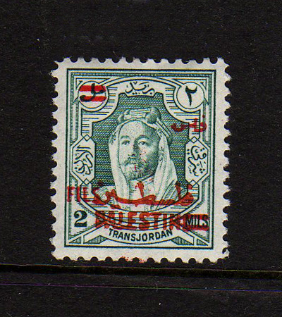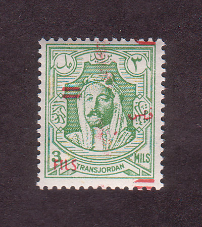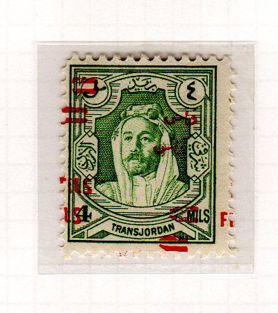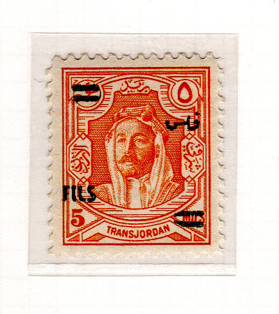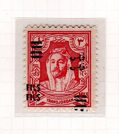 | Notes: | red overprint, on #P3 of Palestine, "Fils" vertical |