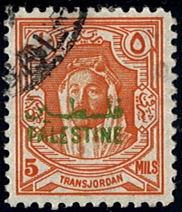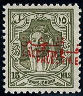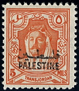 - Palestine 3rd E.E.F. Series with Fiscal Handstamp, "East of Jordan", "Arab Government of the East", and Surcharge (5)