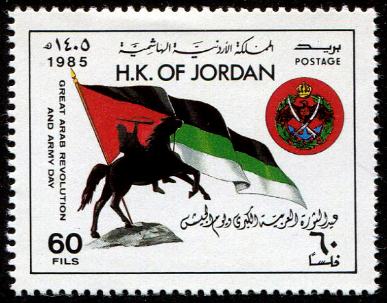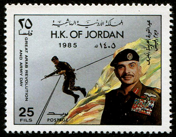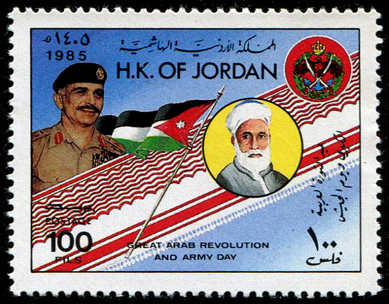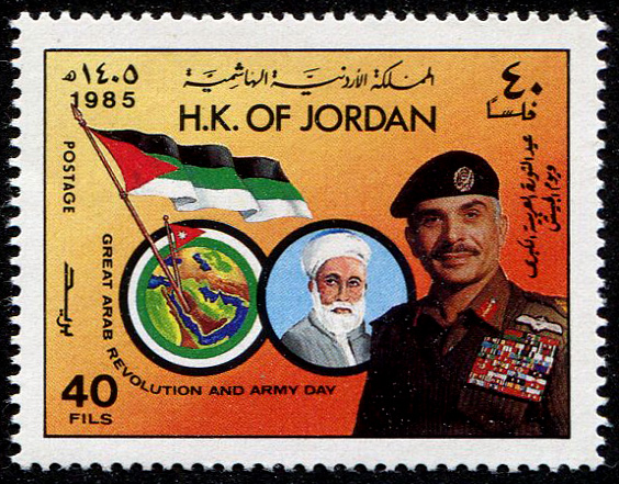 King Hussein, flag, King Abdullah, and arms |