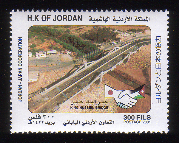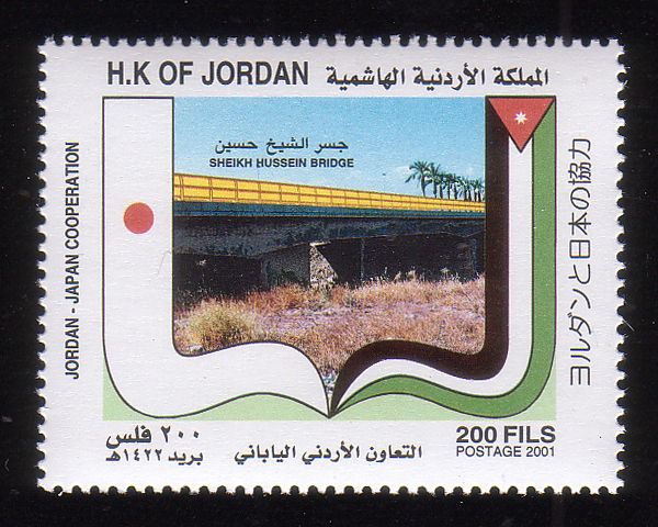 Sheikh Hussein bridge, and Japanese and Jordanian flag |