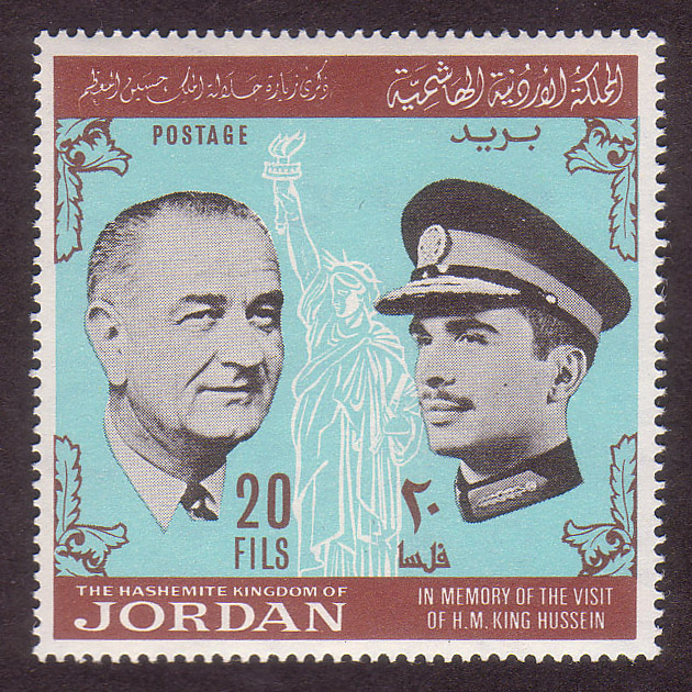 King Hussein, President Johnson and Statue of Liberty |