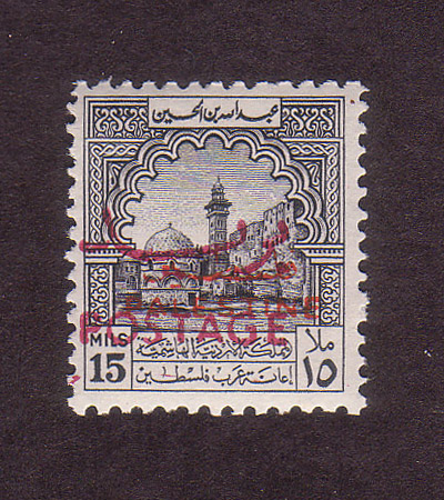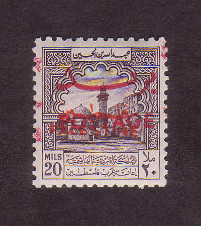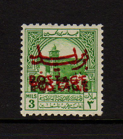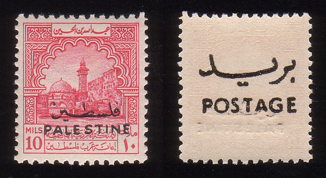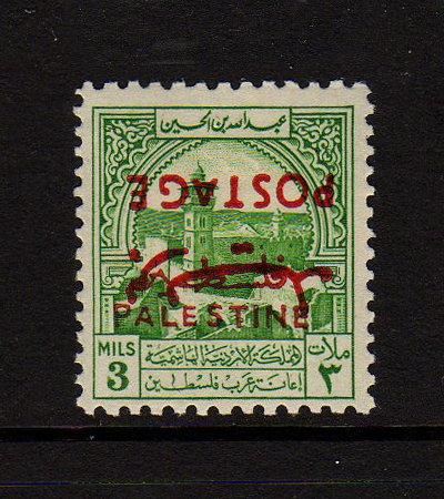 | Notes: | "Postage" overprint red, inverted "Palestine" overprint in black |