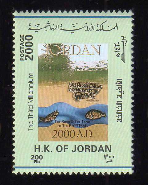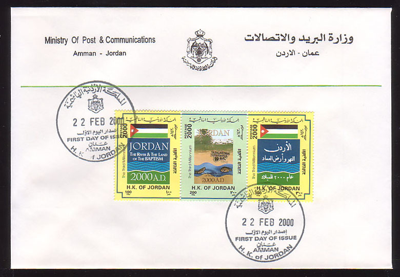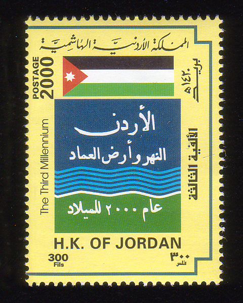 Jordanian flag and stylized "2000 A.D." (English inscription) |