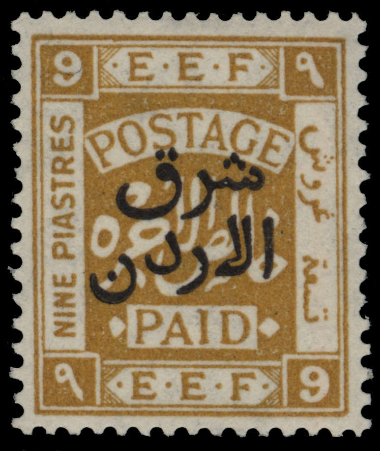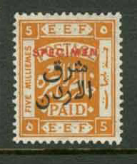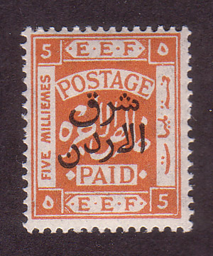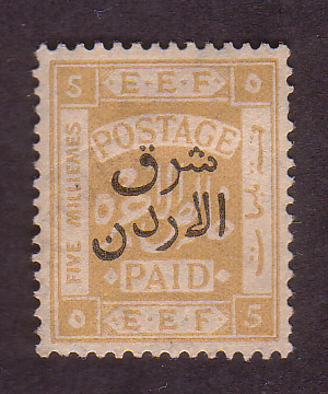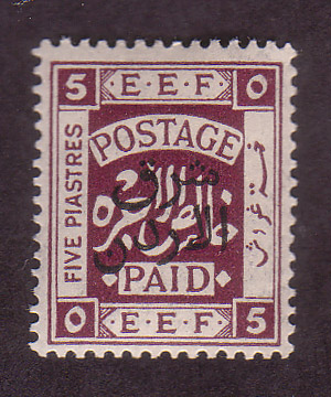 - Palestine 3rd E.E.F. Series with Fiscal Handstamp, "East of Jordan", "Arab Government of the East", and Surcharge (5)