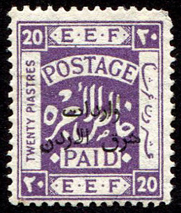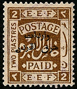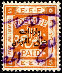 Palestine 3rd E.E.F. Series with Fiscal Handstamp, "East of Jordan", "Arab Government of the East", and Surcharge (5)