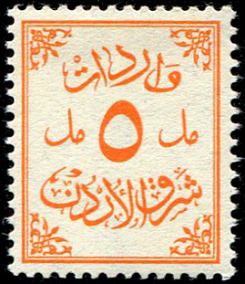 Palestine 3rd E.E.F. Series with Fiscal Handstamp, "East of Jordan", "Arab Government of the East", and Surcharge (5)