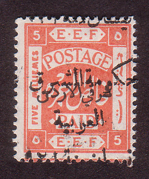 - Palestine 3rd E.E.F. Series with Fiscal Handstamp, "East of Jordan", "Arab Government of the East", and Surcharge (5)