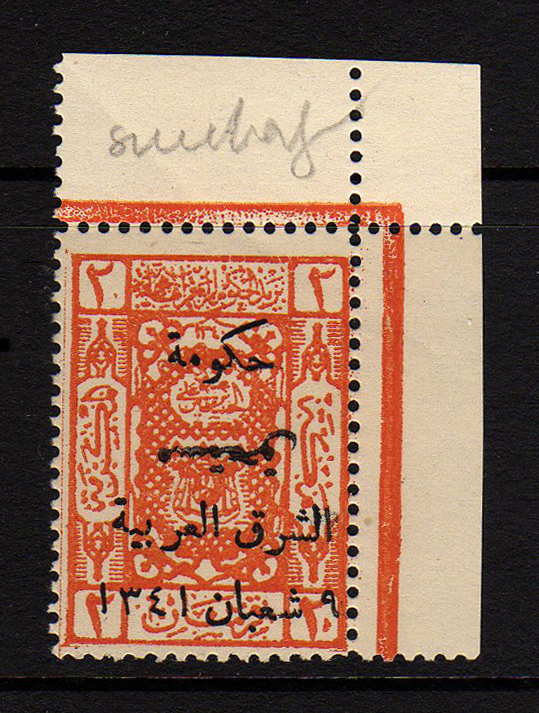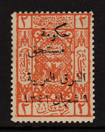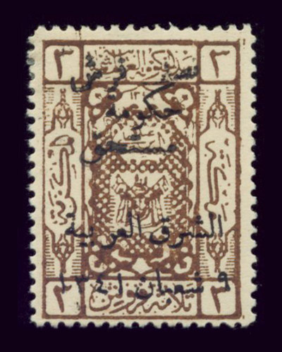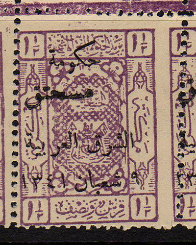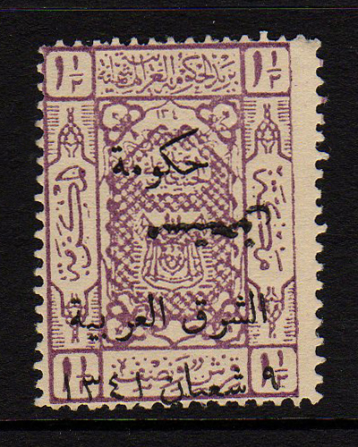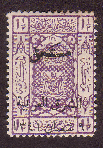 Overprint: "Arab Government of the East, Due, 9 Shaaban 1341" |