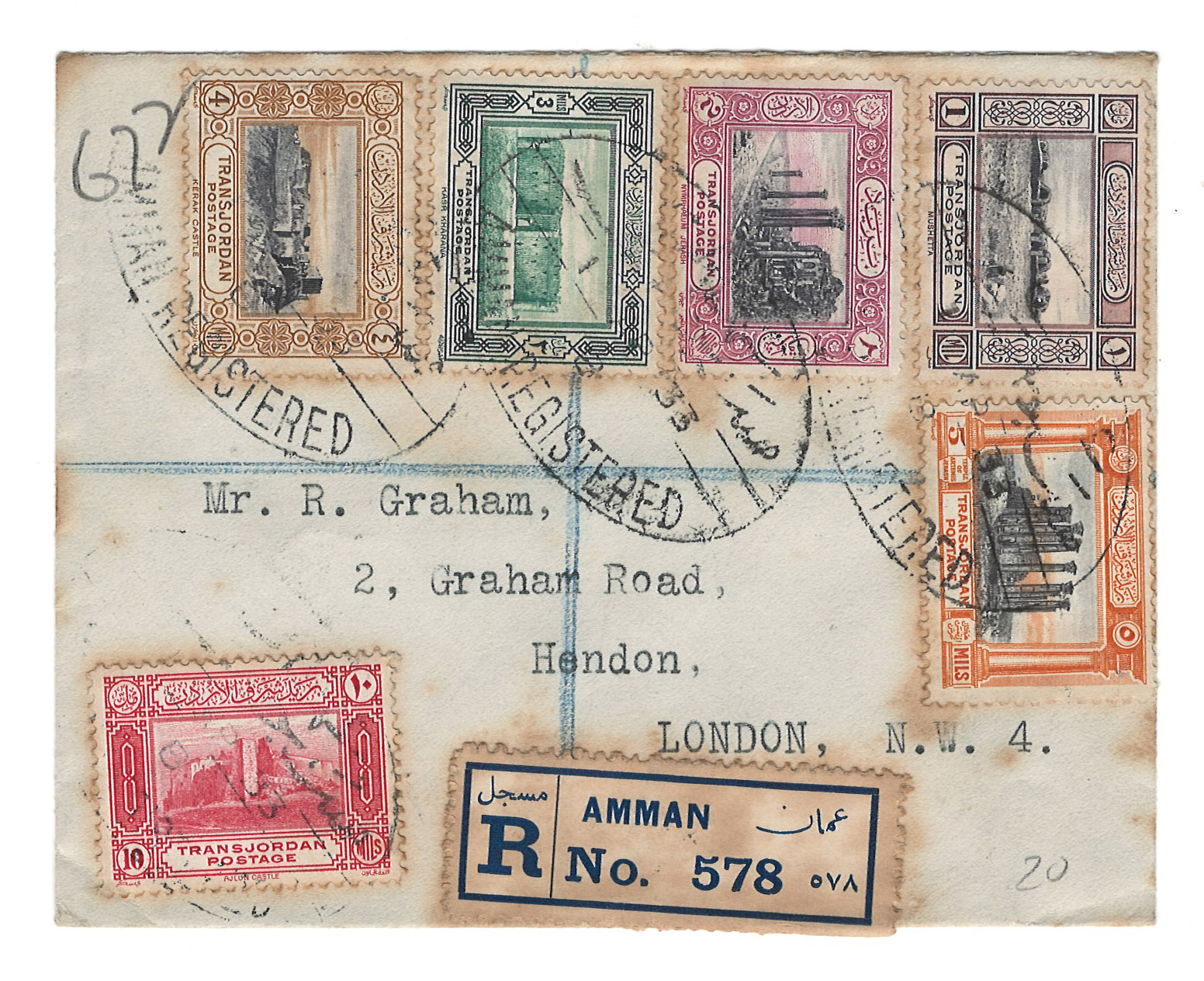 - Palestine 3rd E.E.F. Series with Fiscal Handstamp, "East of Jordan", "Arab Government of the East", and Surcharge (5)