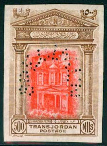 | Notes: | The word "SPECIMEN" perforated in the form of a horseshoe with 67 holes (Najjar Type JS4, Samuel Type P5); reportedly exists imperforate with the same "SPECIMEN" perforation |