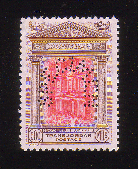 | Notes: | The word "SPECIMEN" perforated in the form of a horseshoe with 67 holes (Najjar Type JS4, Samuel Type P5) |
