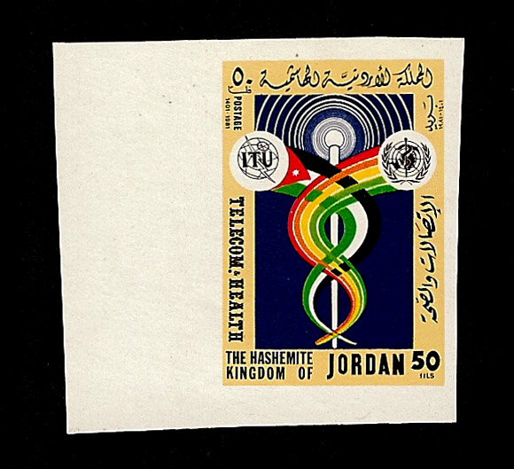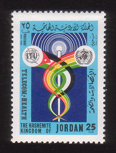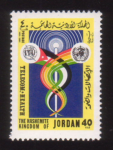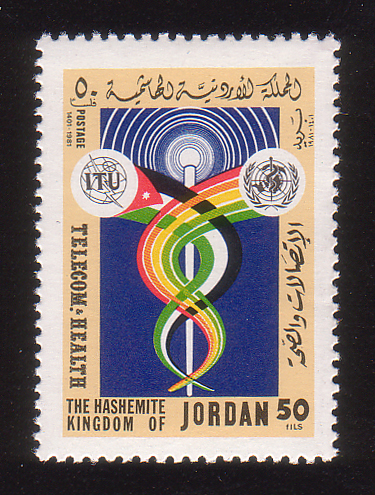 ITU and WHO emblems and ribbons forming Caduceus |