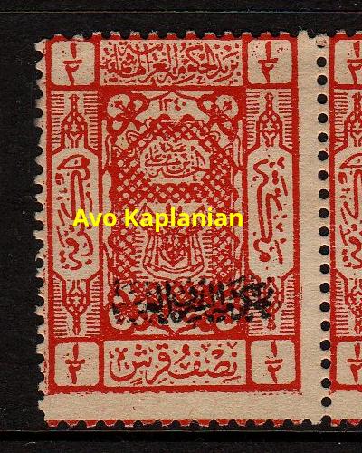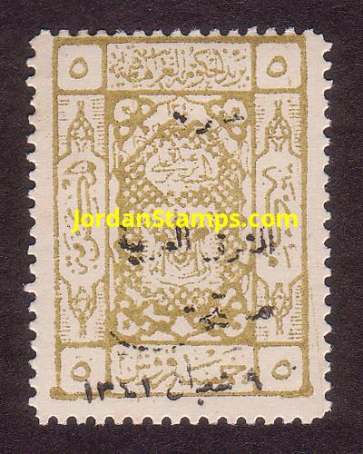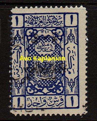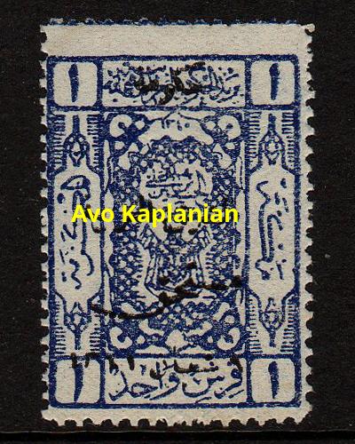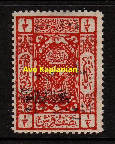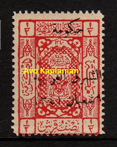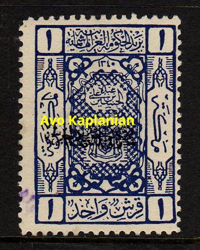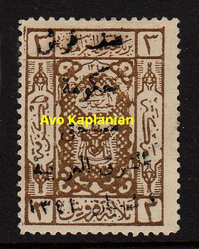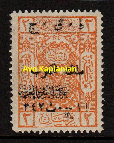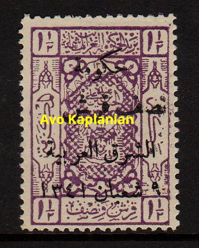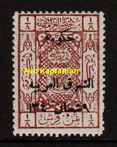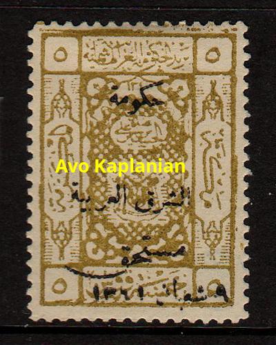 Overprint: "Arab Government of the East, Due, 9 Shaaban 1341" 4,000 printed. |