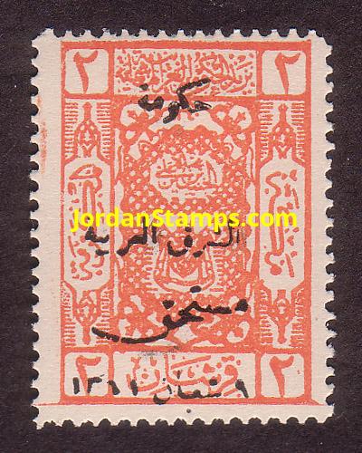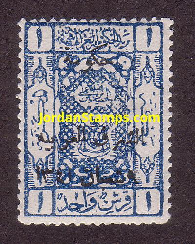 Overprint: "Commemorating the Visit of Hist Majesty the King of the Arabs, Jumada Al-Thani 343" |